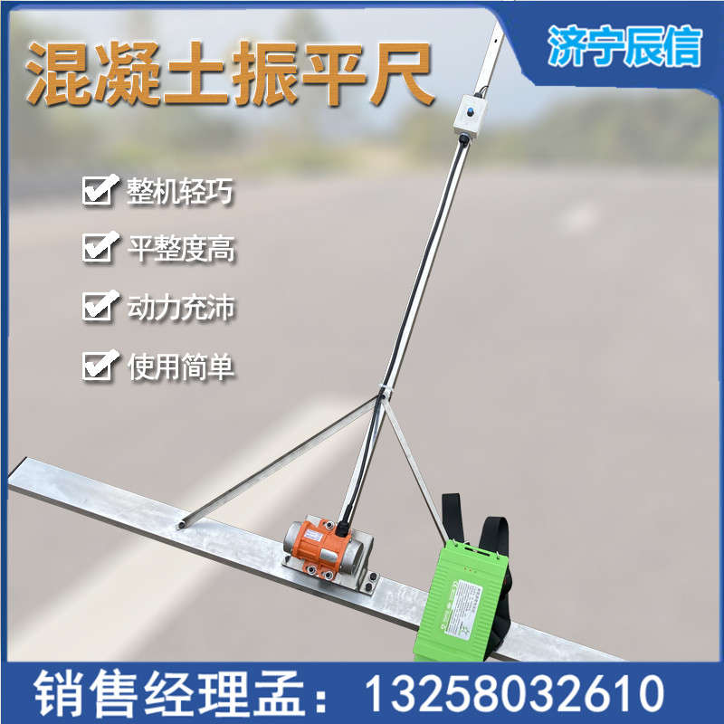 混凝土電動(dòng)振平尺采用大功率振動(dòng)電機(jī),振動(dòng)力強(qiáng)勁,振動(dòng)深度遠(yuǎn)遠(yuǎn)超過(guò)20厘米,可帶動(dòng)1--6米尺桿,充電方便,鋰電池為可拆卸電池