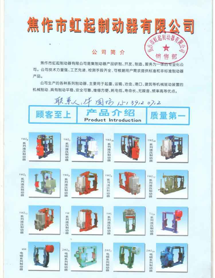 Specializing in the production of pumping brakes, hydraulic brakes, electromagnetic brakes, explosion-proof brakes, winch brakes, belt brakes, tower brakes, pneumatic brakes, wind-proof wedge brakes, wind brakes, caliper disc brakes, port brakes, hoists Brakes, electrohydraulic push rods, pushers and various accessories. We can contact us if you need it. May we cooperate sincerely.