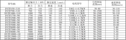 DYTF型分離式電液推桿技術(shù)參數(shù)(選型表)