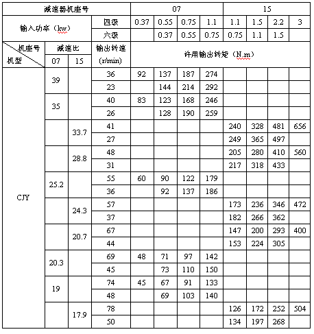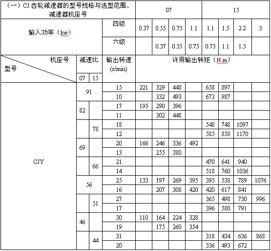 CJ型齒輪三相異步減速機技術參數(shù)及選型參照表