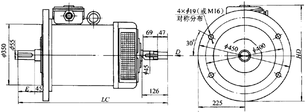 YTDP270~335變頻調(diào)速電梯用異步電動機的結(jié)構型式;