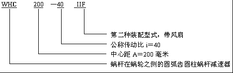 ![]() ![]() WH系列圓弧齒圓柱蝸輪減速機(jī)型號(hào)說(shuō)明及標(biāo)記示例