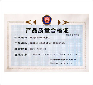 發(fā)證機構:東港市質量技術監(jiān)督局